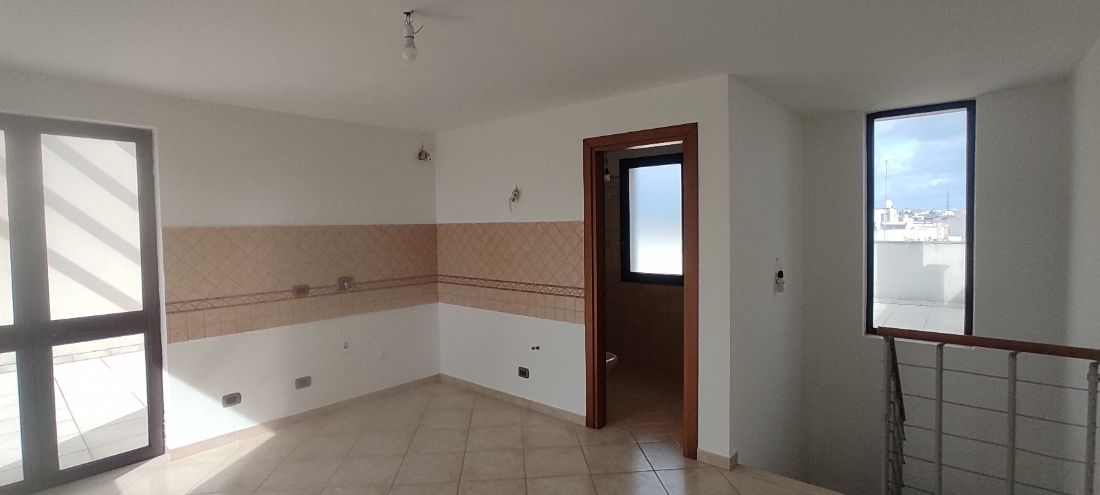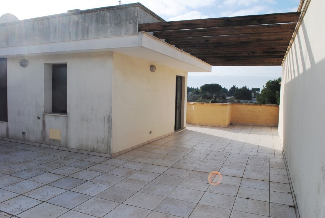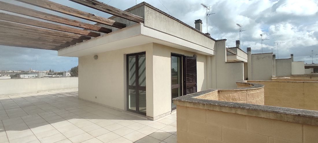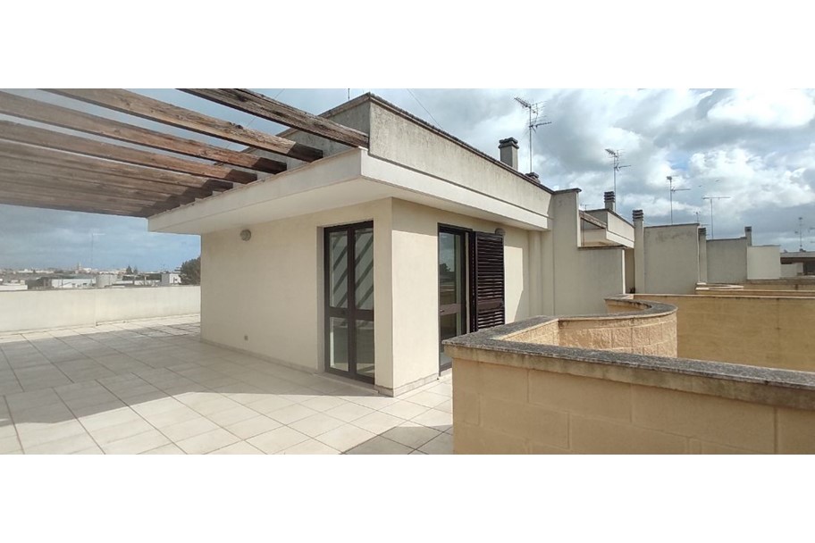 Si propone la vendita di un appartamento sito su via Lequile, a Lecce, posto al primo piano, inserito in un contesto di soluzioni abitative bifamiliari, piani terra con tavernette e primi piani con mansarda. Appartamento inserito in un contesto residenziale, di soli appartamenti, ha ingresso indipendente al piano terra e tramite scale ad uso esclusivo si può accedere sia al garage posto al piano interrato, sia all’appartamento posto al piano primo. Un appartamento di recente costruzione, comodo, con una doppia esposizione Nord Sud che consente di godere di una buona luminosità e areazione. Al primo piano l’appartamento è composto dal soggiorno, spazioso e ospitale dal quale si accede alla cucina ampia e abitabile, tramite disimpegno si accede alla zona notte dove vi sono 2 comode stanze da letto ed il bagno con vasca ed attacchi per eventuale lavatrice. La cucina ha affaccio sul balcone posto sulla parte retrostante, mentre il soggiorno ha affaccio sul comodo balcone abitabile posto sul fronte. Nel soggiorno è collocata la scala che dà accesso al piano secondo dove vi è la mansarda dotata di attacchi di acqua e gas per poter diventare zona cottura e dove vi è il secondo bagno con doccia e attacchi per lavatrice. Dalla mansarda c’è l’accesso all’ampio terrazzo a livello che gira su tre lati della mansarda. Gli impianti sono tutti a norma, gli infissi sono in legno con vetri tripla camera, dotato di impianto di allarme, cassaforte, portoncino blindato, climatizzatore. Un appartamento pronto per essere abitato immediatamente. L’appartamento è dotato di un box auto doppio, per due auto, e di ulteriori due posti auto al piano strada di fronte la proprietà nella zona condominiale. Libero, pronto per essere abitato.