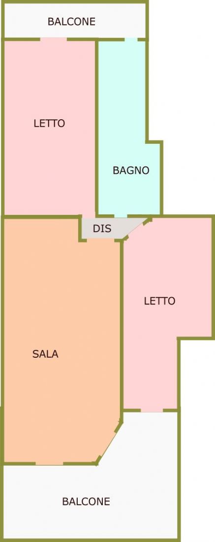 - Zona Notte: Un disimpegno separa la zona notte, composta da 2 camere da letto e 1 bagno finestrati.